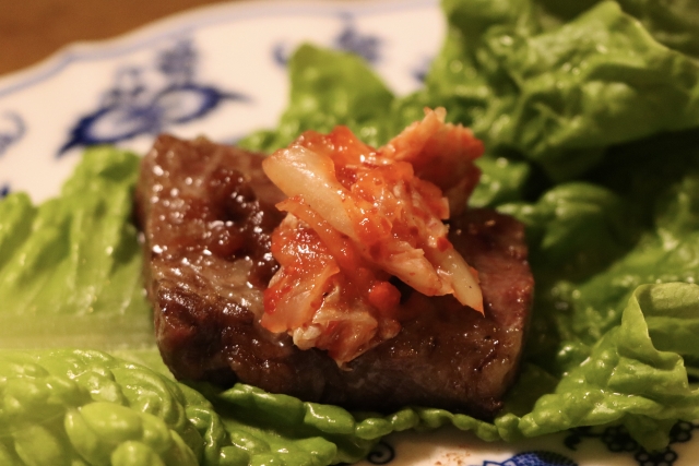 焼肉とサンチュ キムチを添えて